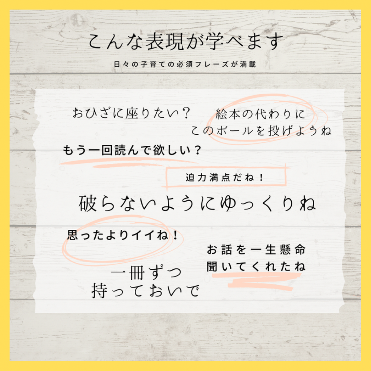本書は絵本のよみきかせで使えるフレーズを100個掲載しています。